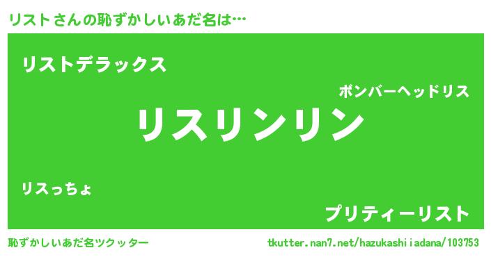 | ヘコむあだ名 | 『リスっちょ』『リスふぇ~』 |