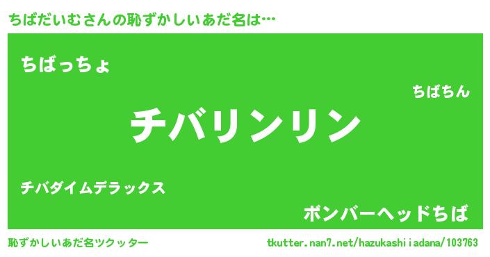 | 女子向けラノベタイトル風あだ名 | 『ちばだいむの卵を拾いまして』 |