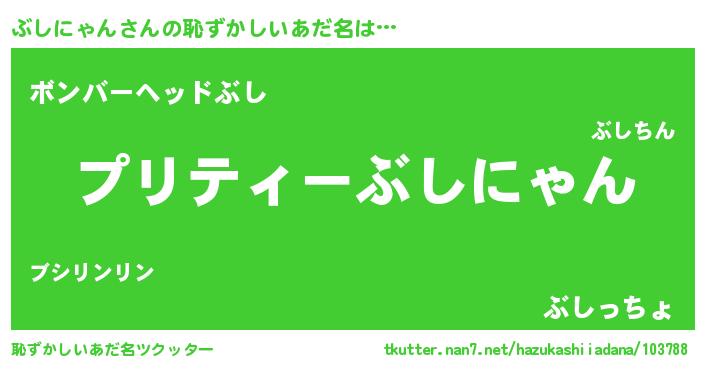 | 男性向けラノベタイトル風あだ名 | 『ブシニャンアートオンライン』 |
