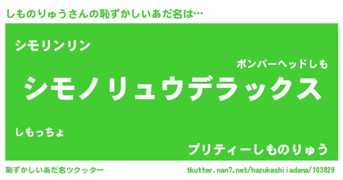 | 意味不明あだ名 | 『自称しものりゅう』 |