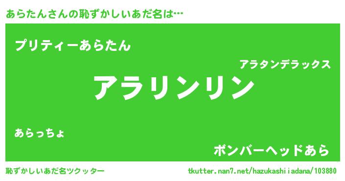| ヒーロー風カッコイイあだ名 | 『天弓騎士アラ』『スーパーアラタン』 |