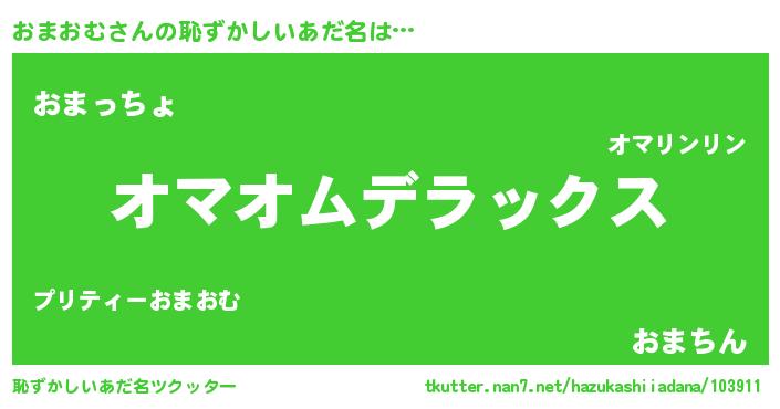 | 男性向けラノベタイトル風あだ名 | 『魔法科高校のおまおむ』 |