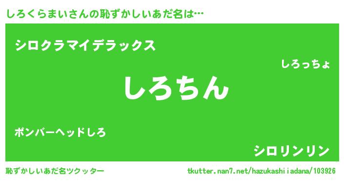 | 意味不明あだ名 | 『永久保存しろくらまい』 |
