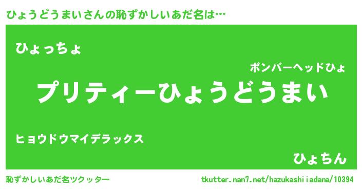 | 男性向けラノベタイトル風あだ名 | 『この素晴らしい世界にひょうどうまいを!』 |