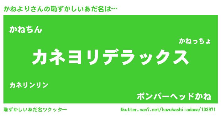 | ヘコむあだ名 | 『かねより(遠い目)』『豆乳』 |