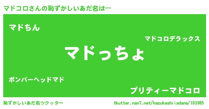 | 意味不明あだ名 | 『マドコロフォーエバー』『自称マドコロ』 |