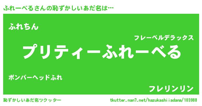| 意味不明あだ名 | 『ペロリンふれーべる』『自称ふれーべる』 |