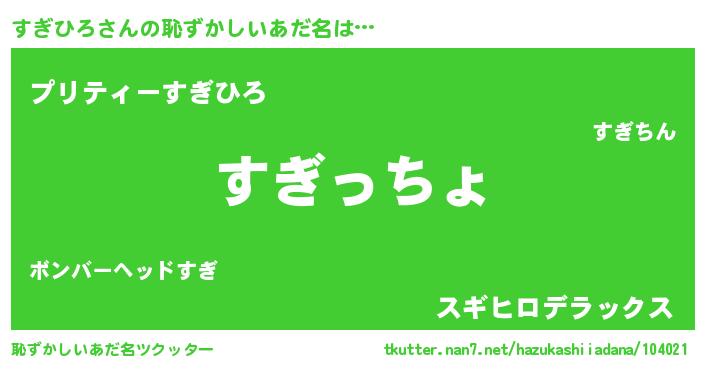 | ヒーロー風カッコイイあだ名 | 『ウルトラすぎひろマン』『仮面スギダー』 |