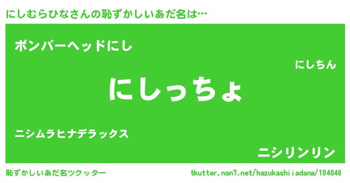 | ポケモン風あだ名 | 『ニシゴンZ』『ニシムダネ』 |