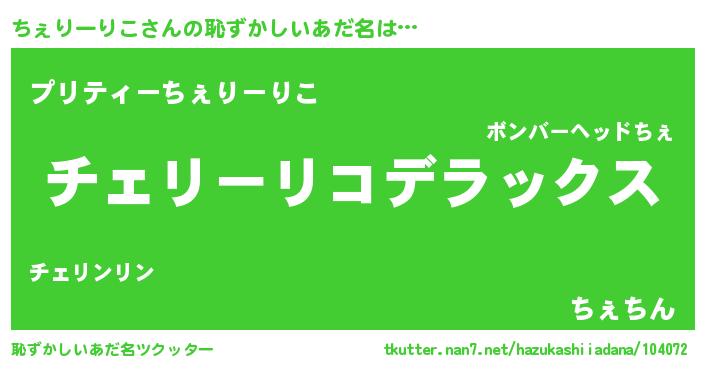 | ヘコむあだ名 | 『ちぇにー』『ちぇりーりこ(苦笑)』 |