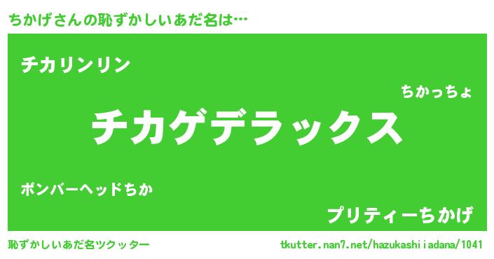 | ヒーロー風カッコイイあだ名 | 『サイバー戦士チカゲ』『炎刃騎士チカ』 |