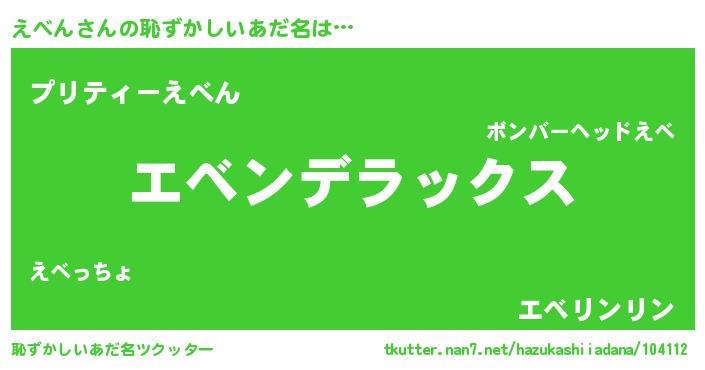 | ヘコむあだ名 | 『えべもー』『えべぷりん』 |