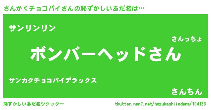 | 料理風あだ名 | 『さんかくチョコパイのカルパッチョ風』 |