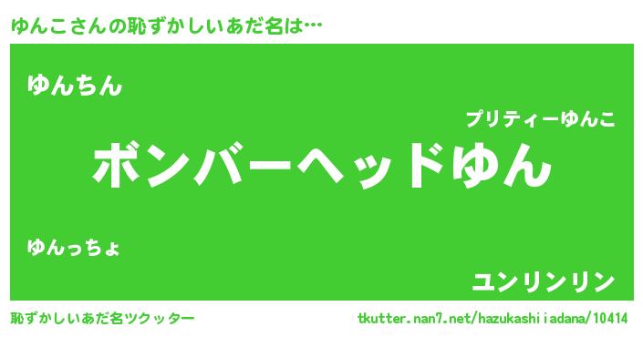 | ヘコむあだ名 | 『ゆんこ(笑)』『ゆんっちょ』 |