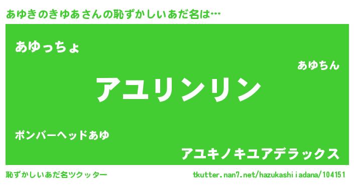 | 意味不明あだ名 | 『とにかく怪しいあゆきのきゆあ』 |