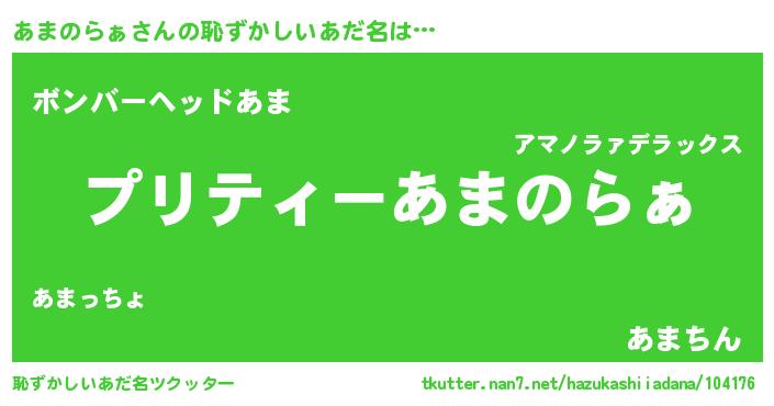 | 男性向けラノベタイトル風あだ名 | 『あまのらぁの憂鬱』 |