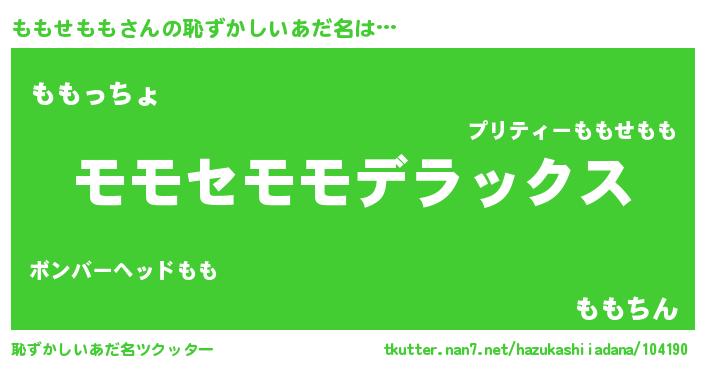 | 男性向けラノベタイトル風あだ名 | 『転生したらももせももだった件』 |