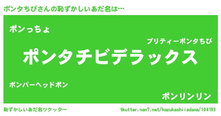 | 意味不明あだ名 | 『自称ポンタちび』『ペロリンポンタちび』 |
