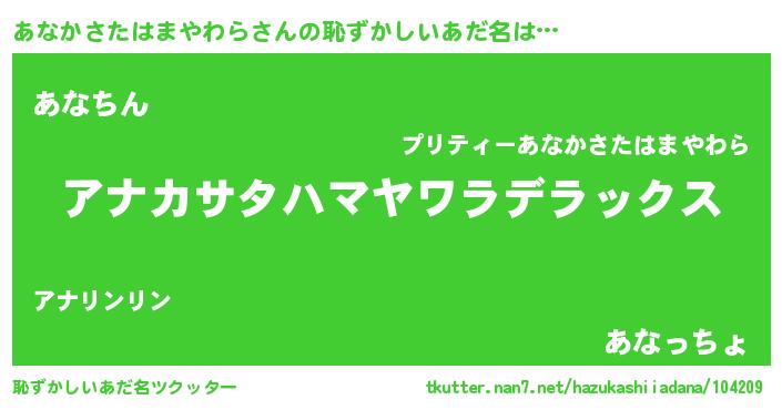 | 意味不明あだ名 | 『自称あなかさたはまやわら』 |
