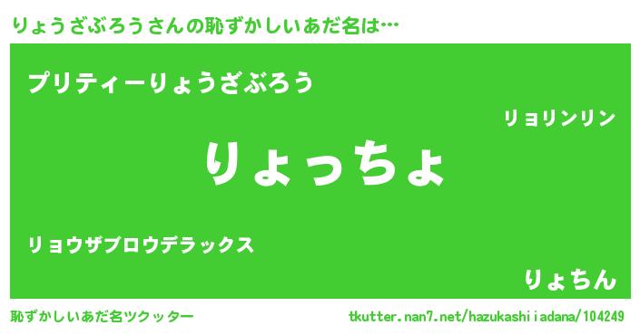 | 男性向けラノベタイトル風あだ名 | 『リョウザブロウスレイヤー』 |