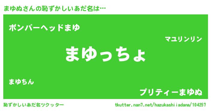 | ヘコむあだ名 | 『なまこ酢』『まゆにー』『まゆを』 |