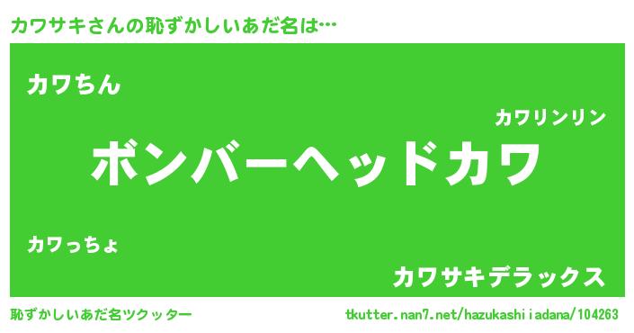 | 意味不明あだ名 | 『住所不定無職カワサキ(50歳)』 |