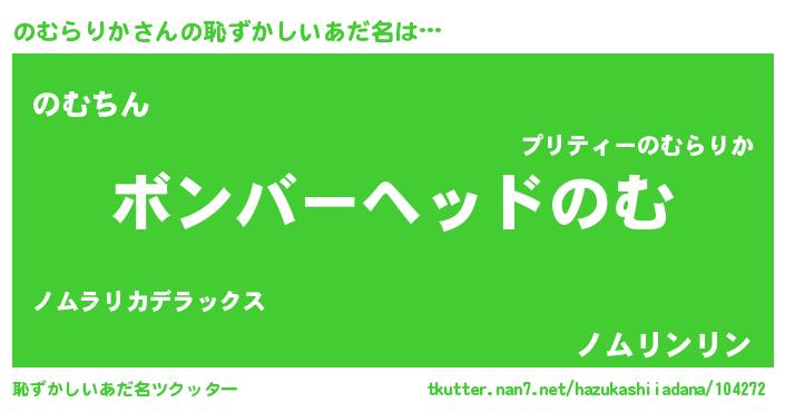 | ヘコむあだ名 | 『のむらりか(苦笑)』『のむ太郎』 |