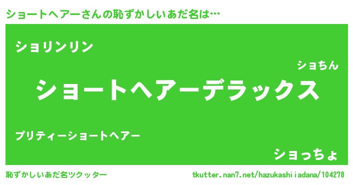 | 男性向けラノベタイトル風あだ名 | 『ショートヘアーに滅ぼされるだけの簡単なお仕事です』 |