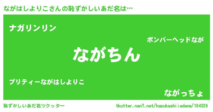 | ヘコむあだ名 | 『ながはしよりこ(小並感)』『ながぷりん』 |