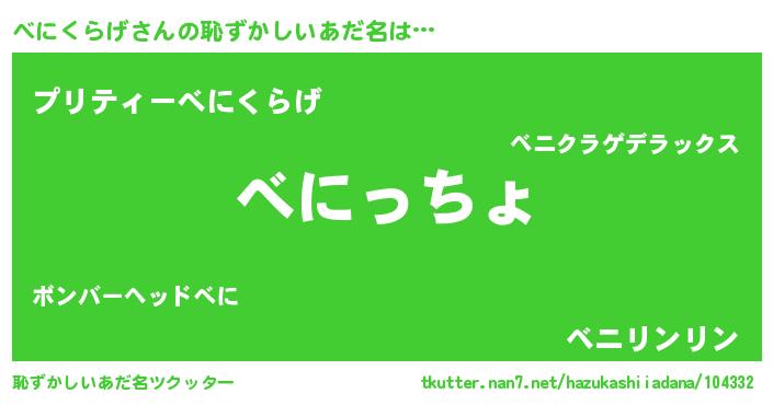 | ヘコむあだ名 | 『豆乳』『べににゅー』『べにぷりん』 |