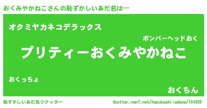 | 男性向けラノベタイトル風あだ名 | 『おくみやかねこの憂鬱』 |