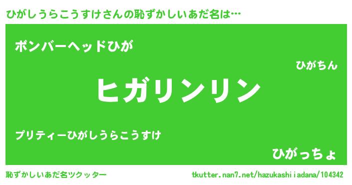 | 欧米人風あだ名 | 『ダレノガレひがしうらこうすけ』 |