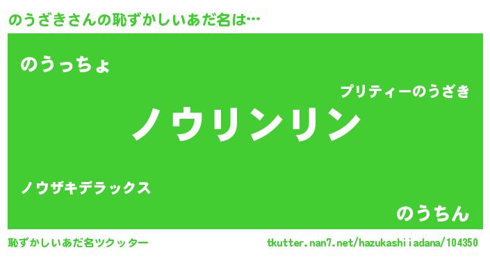 | 男性向けラノベタイトル風あだ名 | 『転生したらのうざきだった件』 |