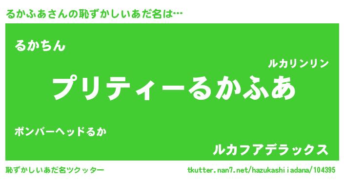 | ヘコむあだ名 | 『るかにー』『るかふあ(笑)』 |