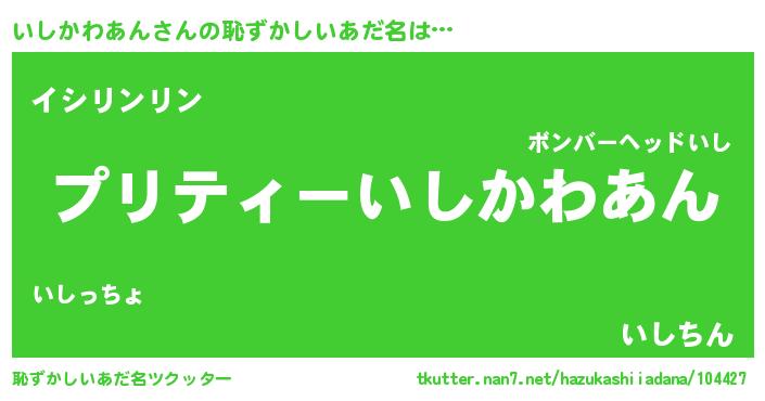 | ヒーロー風カッコイイあだ名 | 『スーパーイシカワアン』『銀牙騎士イシ』 |