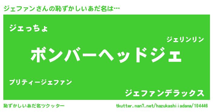 | 意味不明あだ名 | 『眠気覚ましガムジェファン味』 |