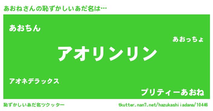 | ヘコむあだ名 | 『あおぷりん』『あおね(苦笑)』 |