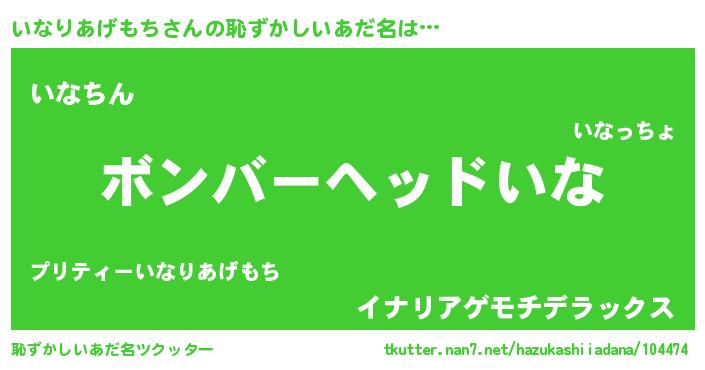 | 男性向けラノベタイトル風あだ名 | 『うちのいなりあげもちが世界を掌握している!』 |