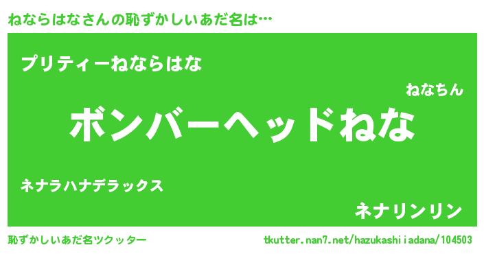 | 肩書あだ名 | 『ねならはな艦長』『ねならはな学科長』 |