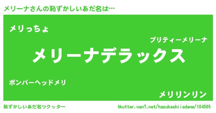 | 意味不明あだ名 | 『自称メリーナ』『メリーナフォーエバー』 |