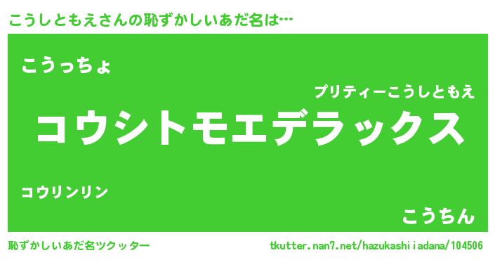 | ヒーロー風カッコイイあだ名 | 『究極戦士コウシトモエ』『仮面コウダー』 |