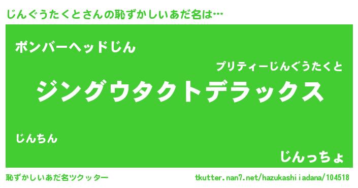 | 男性向けラノベタイトル風あだ名 | 『緋弾のジングウタクト』 |