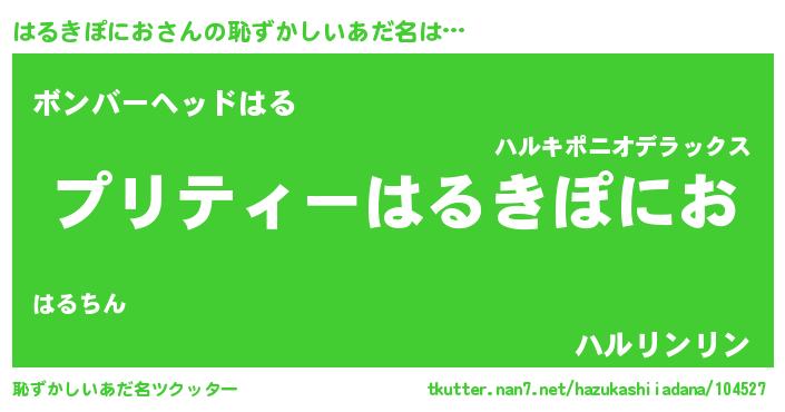 | 胡散臭い通販商品みたいなあだ名 | 『モテモテ間違いなしブレスレット…その名も「はるきぽにお」』 |