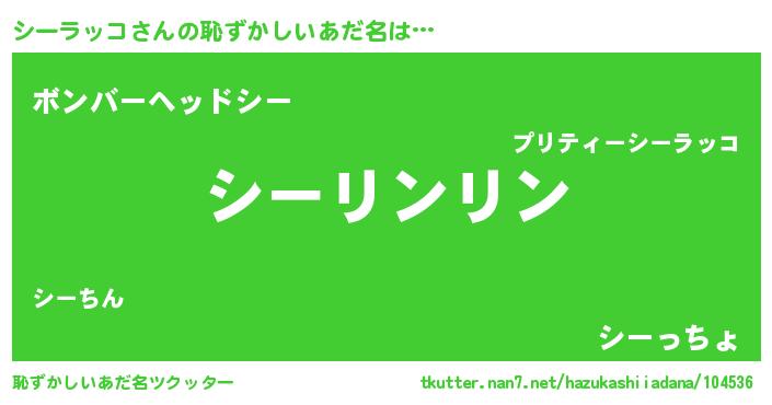 | 欧米人風あだ名 | 『ダレノガレシーラッコ』 |