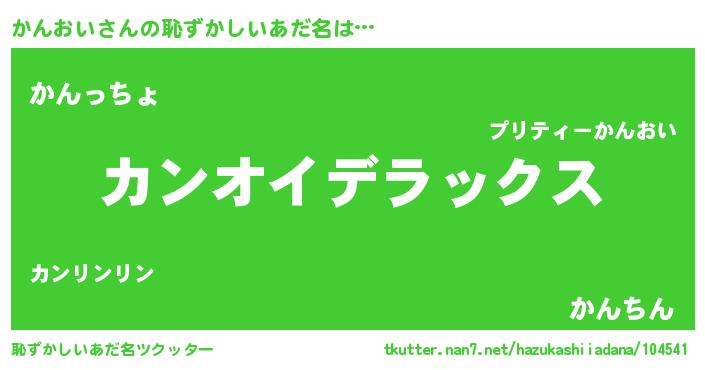 | 男性向けラノベタイトル風あだ名 | 『Re:かんおいから始める異世界生活』 |