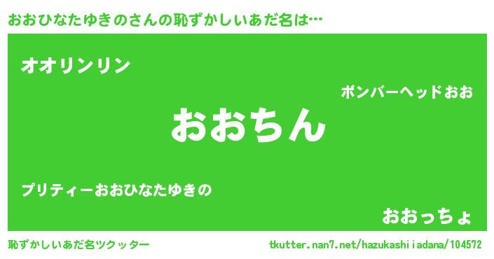 | ポケモン風あだ名 | 『ゼニオオ』『ヒオオヒナタユキノ』 |
