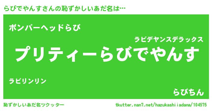| 男性向けラノベタイトル風あだ名 | 『らびでやんすの憂鬱』 |