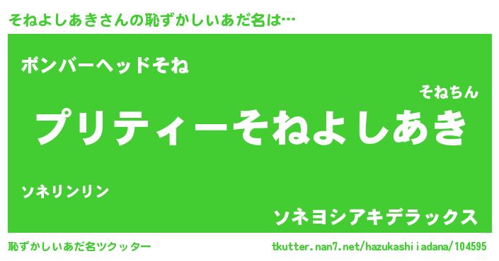 | ヘコむあだ名 | 『そねにー』『そねよしあき(遠い目)』 |