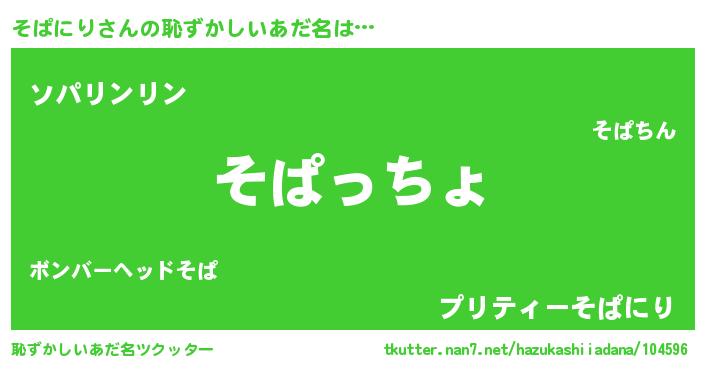 | ヘコむあだ名 | 『なまこ酢』『そぱ太郎』『そぱもー』 |