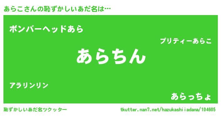 | ヘコむあだ名 | 『あらこ(震え声)』『豆乳』 |